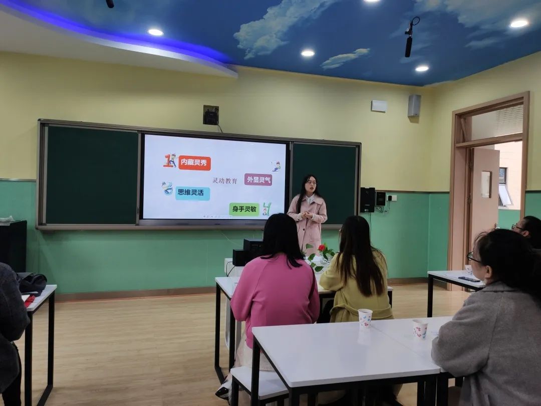▲ 谢佳芮老师介绍我校的“五步教学法”。