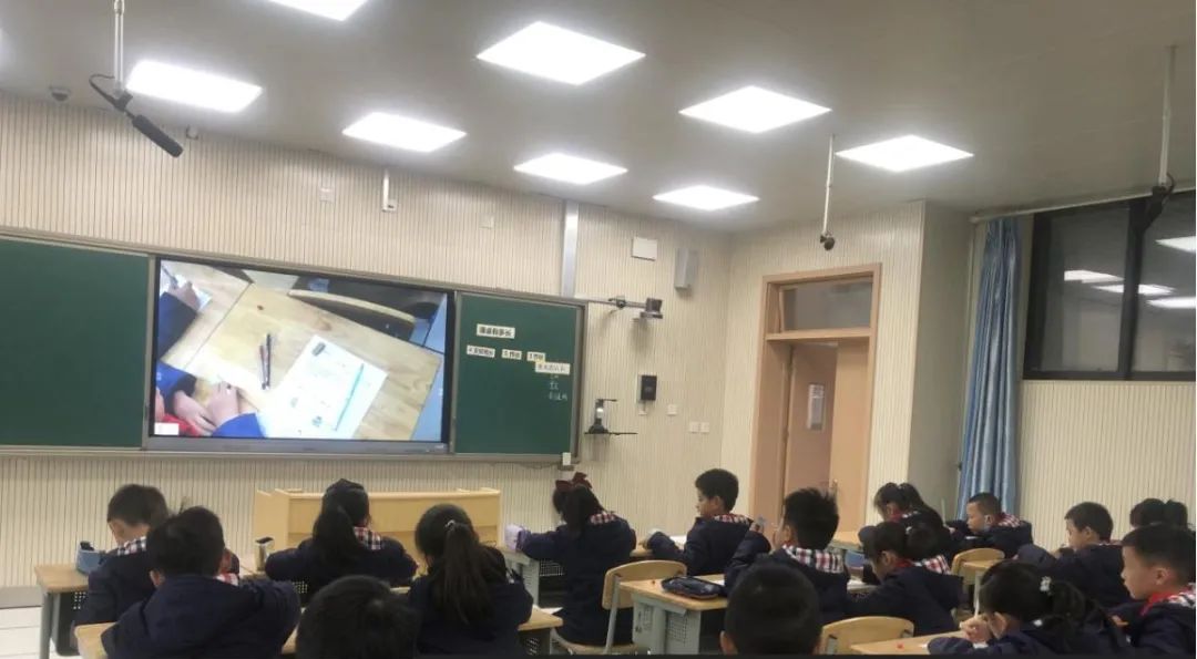 ▲ 利用现代教学技术,投屏展示孩子们的学习成果。