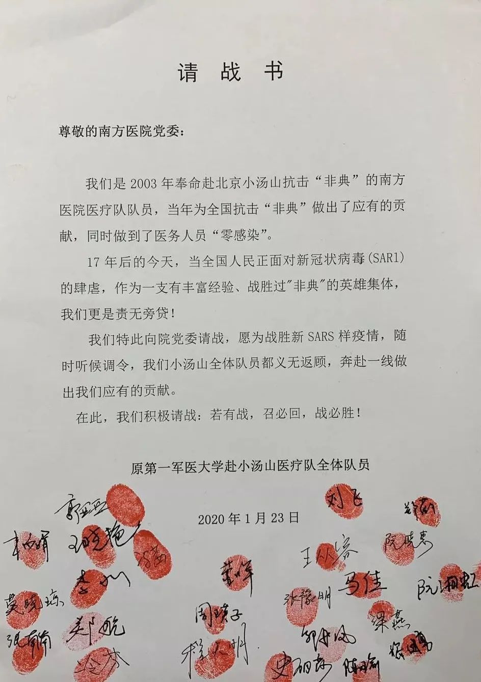 在武汉战“疫”最吃紧的时刻,各地医疗队纷纷主动请缨。非典期间“零感染”的医疗队伍——解放军小汤山医院,率先提交了“请战书”。