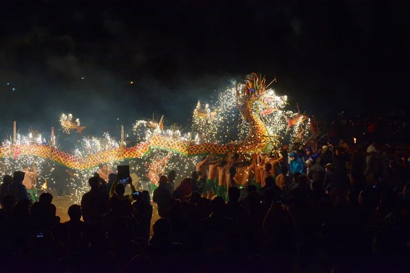 埔寨火龙是我们的春节传统活动,据说至今三百年历史了。“火龙”由铁丝、竹料、纸等扎成,绘上鳞、角、爪,龙首至龙尾长达数十米。在龙身上安装烟花、炮竹、火箭多达数千枚,龙头、龙尾装的火药更数不胜数。一条火龙由三四十个赤膊青年手擎,加上鼓乐手、龙虾、金鱼等人,整个队伍达200多人。