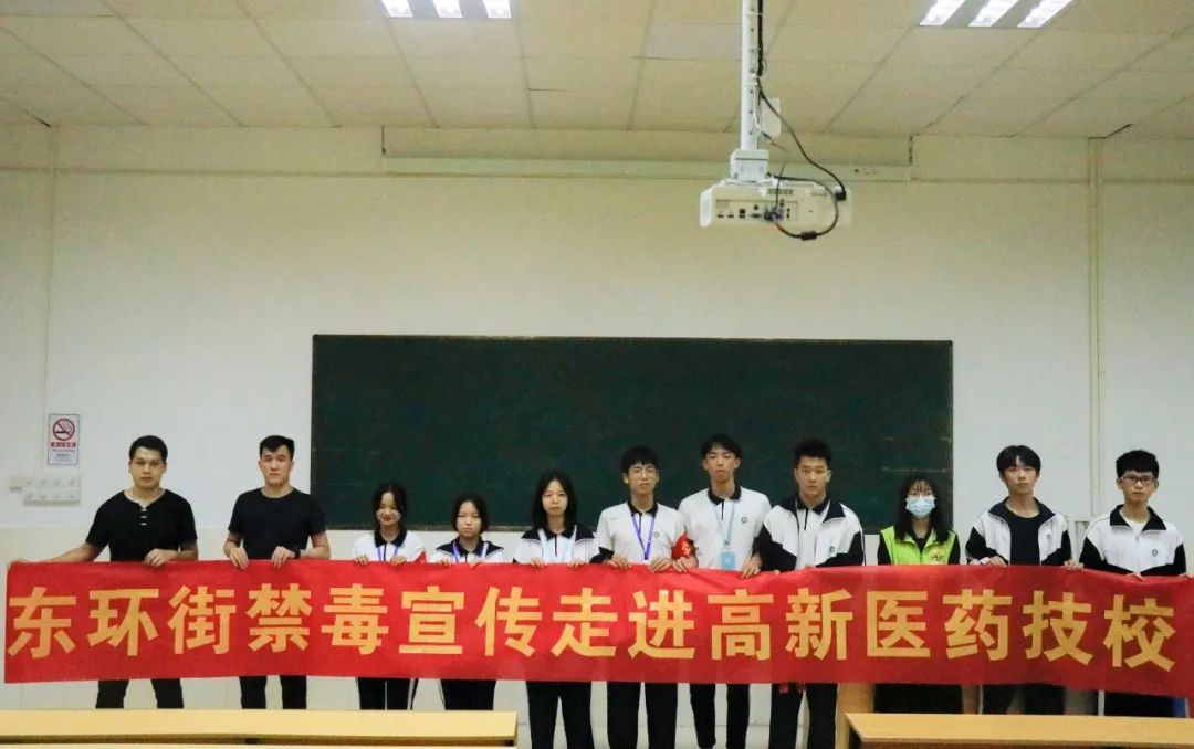 讲座上,东环街禁毒办和派出所为同学讲解毒品危害和常见网络诈骗危害。