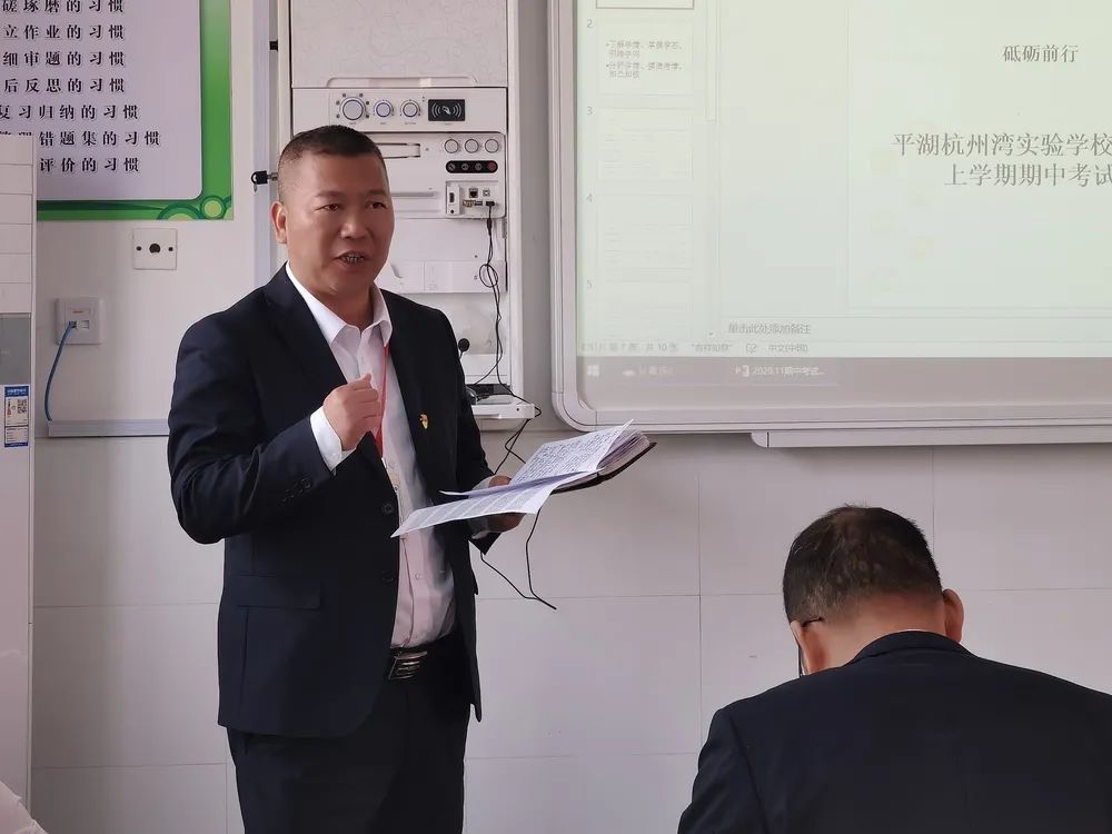 伴随着初冬的脚步,11月8日上午,我校九年级全体教师在培英楼503教室召开了期中考试质量分析会。平湖杭州湾实验学校理事长肖家兴博士、三方合作办学总指挥曹跃平校长及学校初高中部分行政领导参加了此次会议。