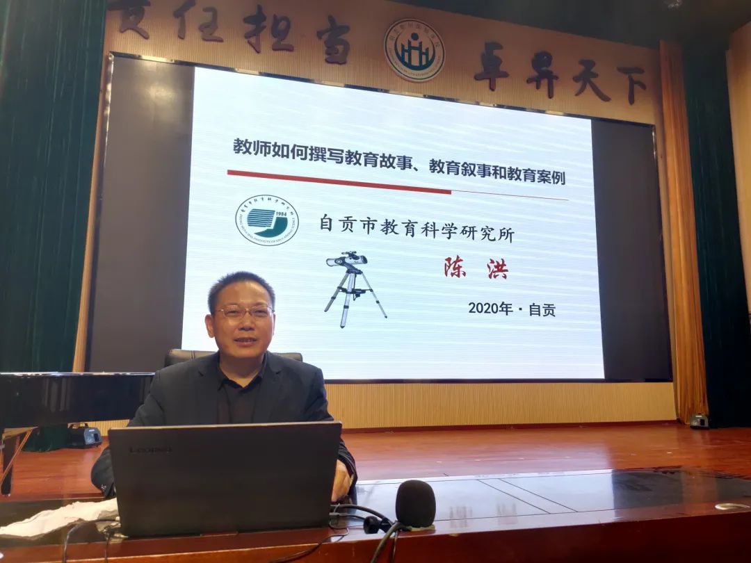 11月10日,学校邀请到正高级教师、自贡市高层次人才“双千计划”优秀专家、自贡市教育科学研究所理论室陈洪主任为全校教师作了题为《教师如何撰写教育故事》和《核心素养下的深度学习》专题讲座,300余名专职教师聆听讲座。