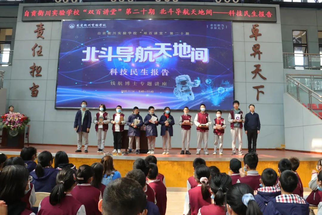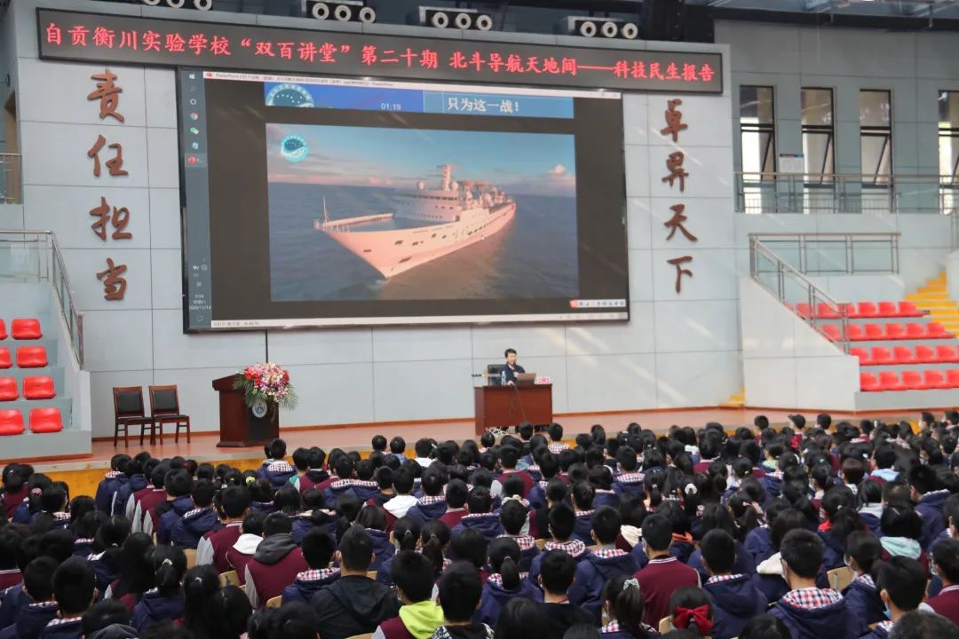 11月14日,中国航天科技集团中国运载火箭技术研究院总体设计部火箭设计师、中国科学院国家空间科学中心博士钱航走进衡川“双百讲堂”,与莘莘学子共话科技,揭开北斗卫星导航系统的神秘面纱!我校小学、初中、高中1500余名师生参与了本次活动。