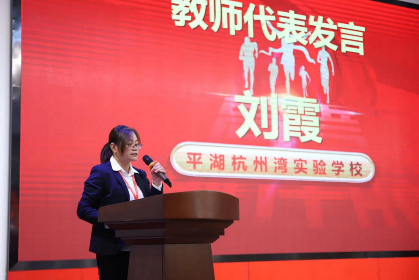刘霞老师代表教师为全体高三同学壮行。刘霞老师说:“生命之旅在于爬山,而现在我们正要攀爬高考这一座大山。”紧接着,刘老师根据上一届学长学姐的成绩,合理分析了本届学生应该树立的目标。她说:“唯有找准方法,才能实现超越。”此外刘老师为同学们传授了学习的秘诀“三心二意——有信心、能专心、够细心,有毅力、够努力”。一句句严厉中不乏期待和关爱的话语,让每一位高三学生备受鼓舞、深受感动。