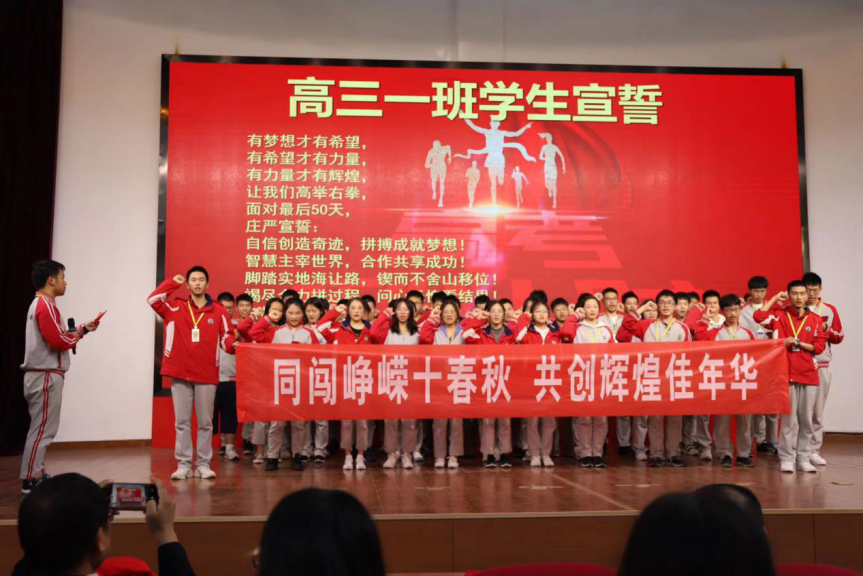 “十二载闻鸡起舞写成激扬文字 五十天卧薪尝胆描绘锦绣前程”,高三年级的毕业生们即将展翅高飞,没有什么能够阻挡这群雄鹰般的青年人。一张张激情洋溢的脸庞展现的就是他们对于未来的期待,对于前路艰险的无畏,更是对于近在眼前的首考的信心。