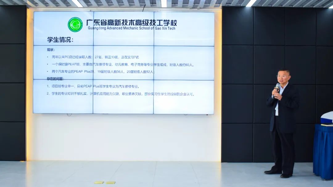 PEAP项目广东高新负责人王则如老师从学生培养、教师队伍、实训建设、项目管理评估等方面,作出项目汇报: