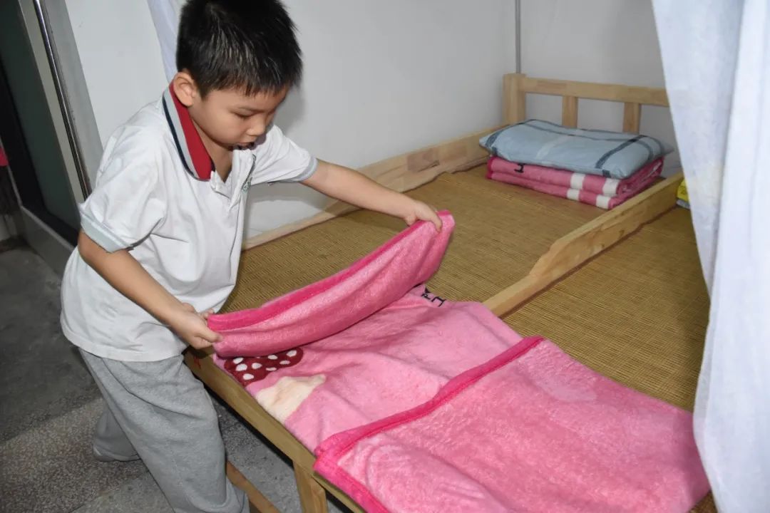 旗下学校实行寄宿制管理,培养孩子独立自理能力,包括整理衣服、收拾房间、整理书包等。