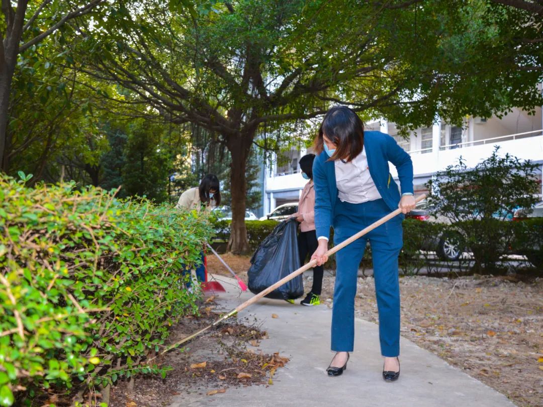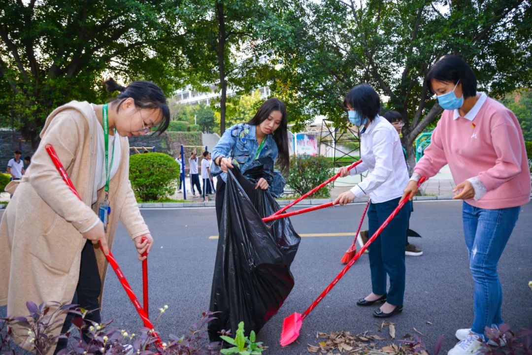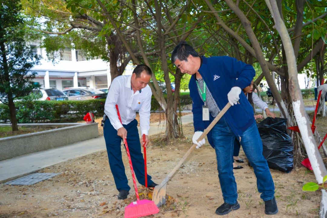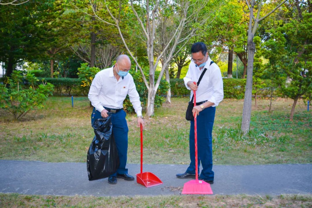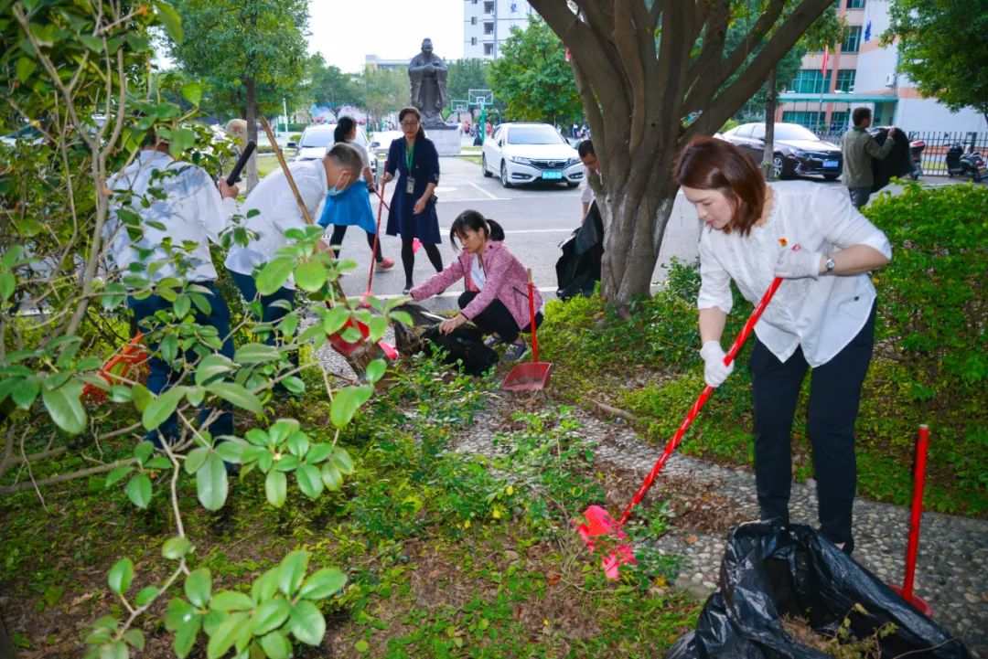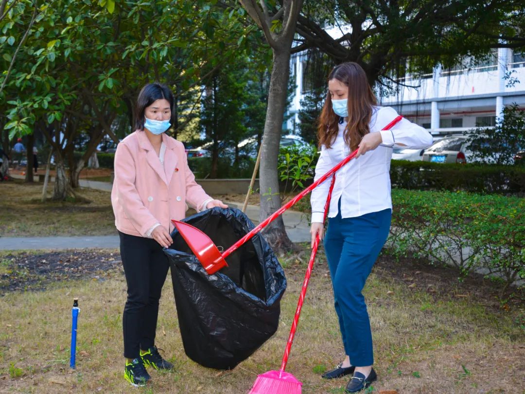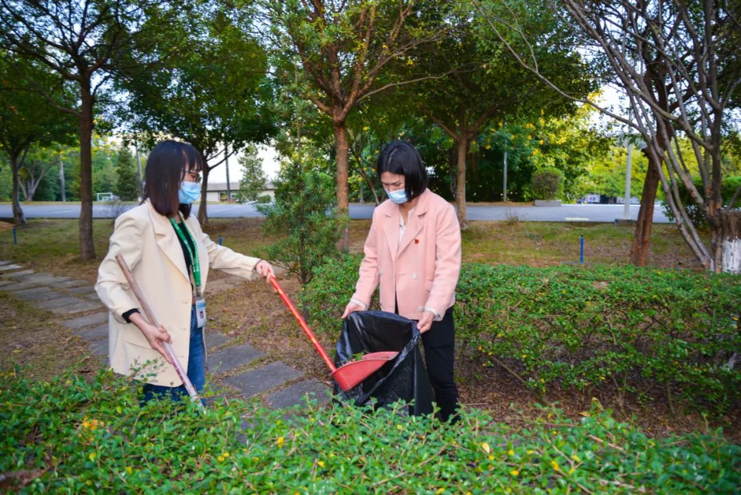 签约仪式结束后,两个党支部全体党员分成4个小组,联合开展校园卫生清洁活动。