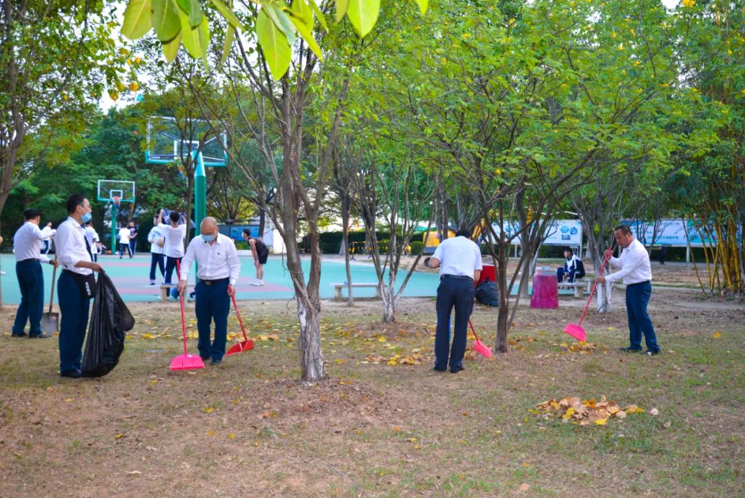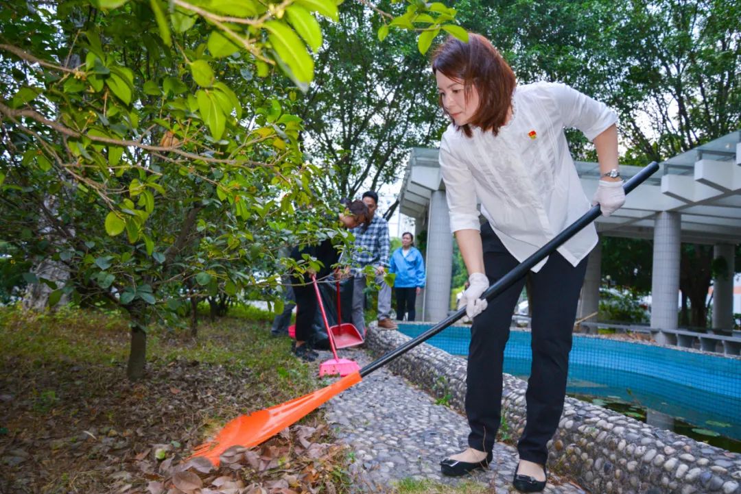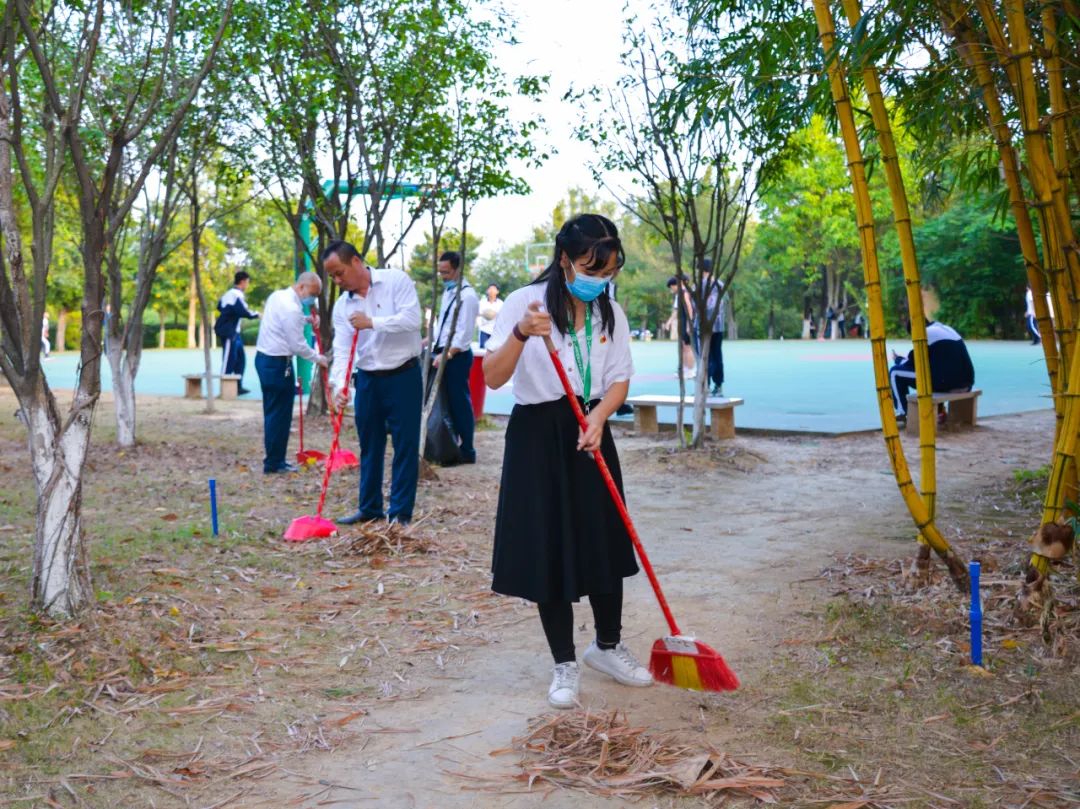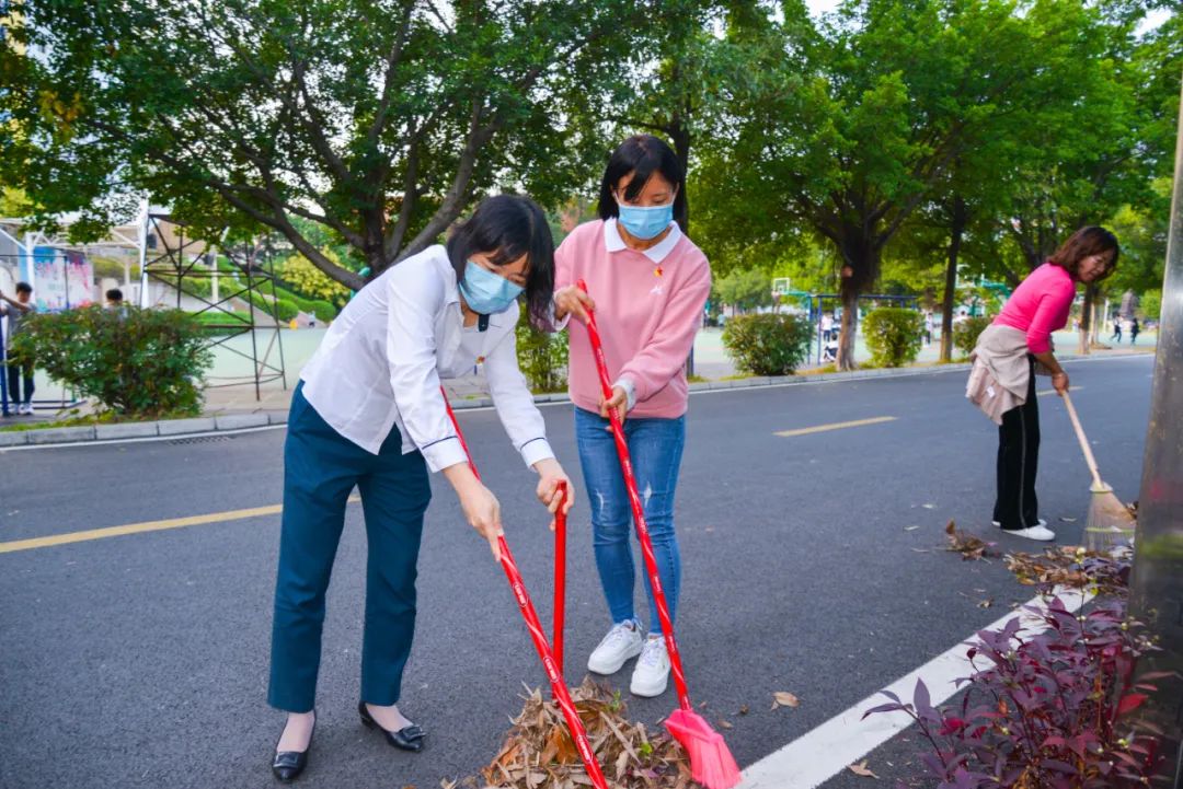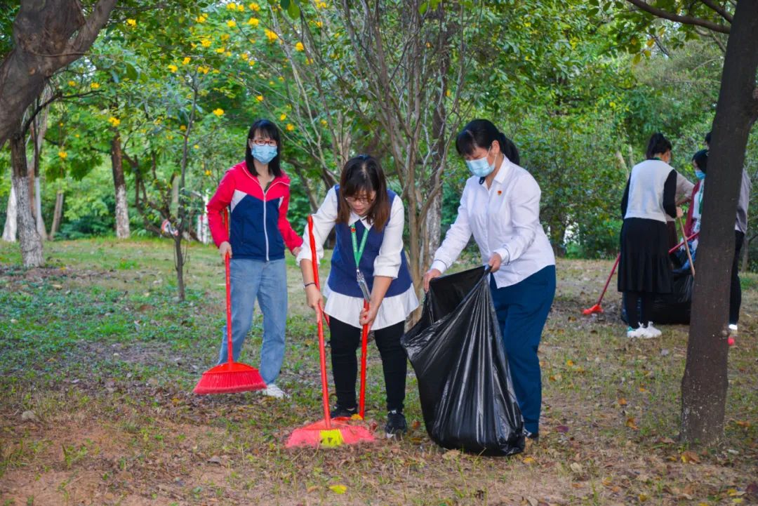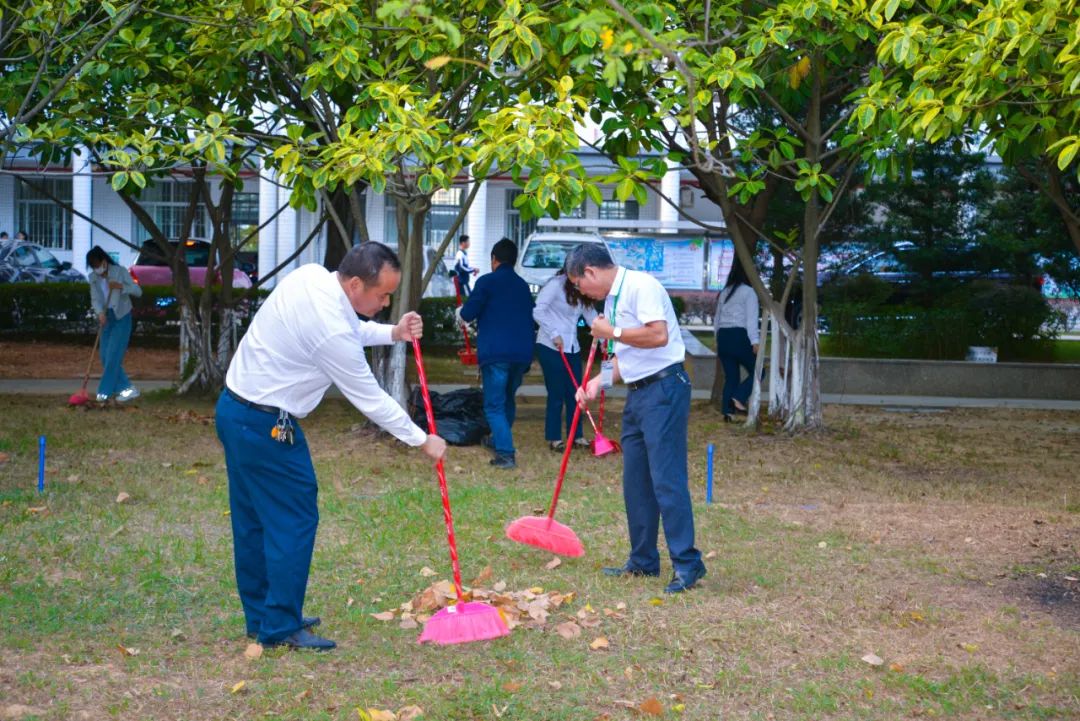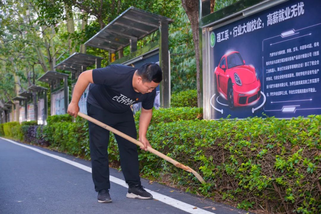 签约仪式结束后,两个党支部全体党员分成4个小组,联合开展校园卫生清洁活动。