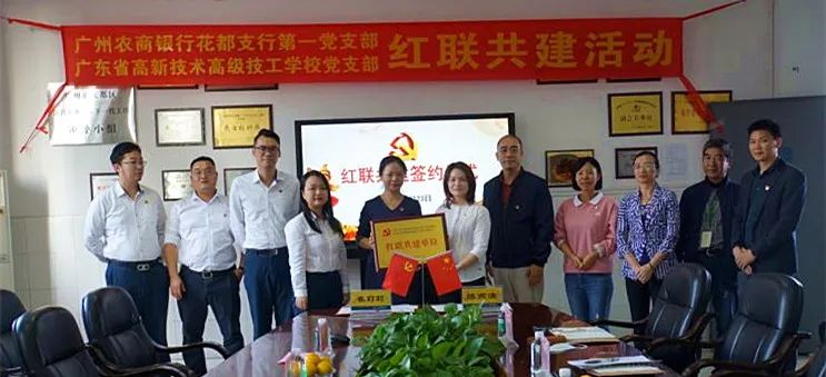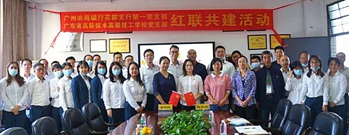 为进一步加强我校党组织建设,提升新形势下党支部工作成效,实现党建优势互补,我校党支部与广州农商银行花都支行第一党支部举行“红联共建”签约仪式,开展党建共建活动。
