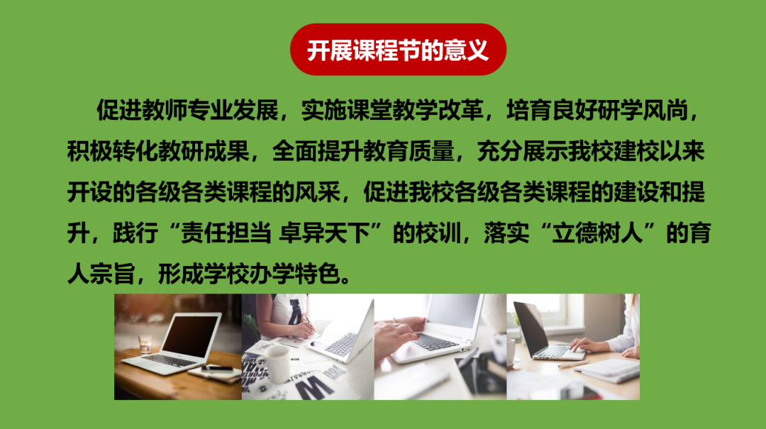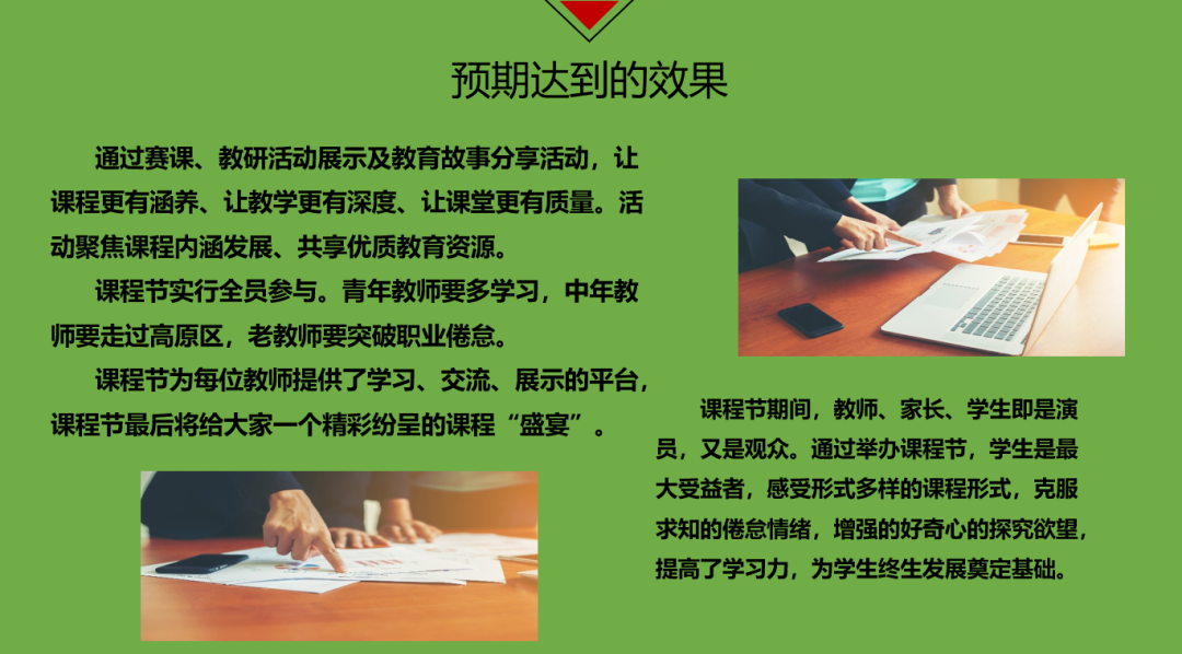 吴燕校长首先从课程节的意义出发,让大家明确了课程节开展的重要意义。然后从国家级课程展示、地方课程展示及校本课程展示、大课堂展示、优秀教研活动展示、班主任班会课比赛、家长讲堂、优秀校本课程汇展及汇演等七个方面进行了具体的阐述,让大家找到了落实的方向。最后吴燕校长对本次课程节的圆满进行表达了衷心的祝愿和满满的期待。她表示:本次课程节为每位教师提供了学习、交流、展示的平台,最后将给大家一个精彩纷呈的课程“盛宴”。课程节期间,教师、家长、学生即是演员,又是观众。通过举办课程节,学生是最大受益者,感受形式多样的课程形式,克服求知的倦怠情绪,增强的好奇心的探究欲望,提高了学习力,为学生终生发展奠定基础。