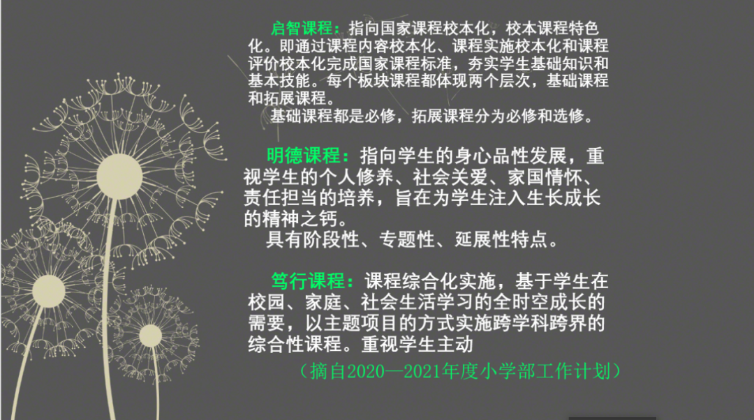 小学部钟小娟校长结合小学部现有的特色课程作了《课程理念与实施》主题报告。