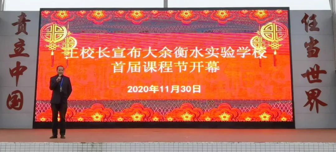 为促进教师专业发展,实施课堂教学改革,培育良好研学风尚,积极转化教研成果,全面提升教育质量,充分展示我校建校以来开设的各级各类课程的风采,促进我校各级各类课程的建设和提升,践行“责任担当 卓异天下”的校训,落实“立德树人”的育人宗旨,形成学校办学特色。11月30日上午,大余衡水实验学校隆重举行首届课程节启动仪式,大余衡水实验学校总校长王跃平宣布大余衡水实验学校首届课程节开幕。本次课程节主题为“提升课程素养,展示衡实风采”。课程节为期一个月,旨在让教师和学生展示和体验多元课程。