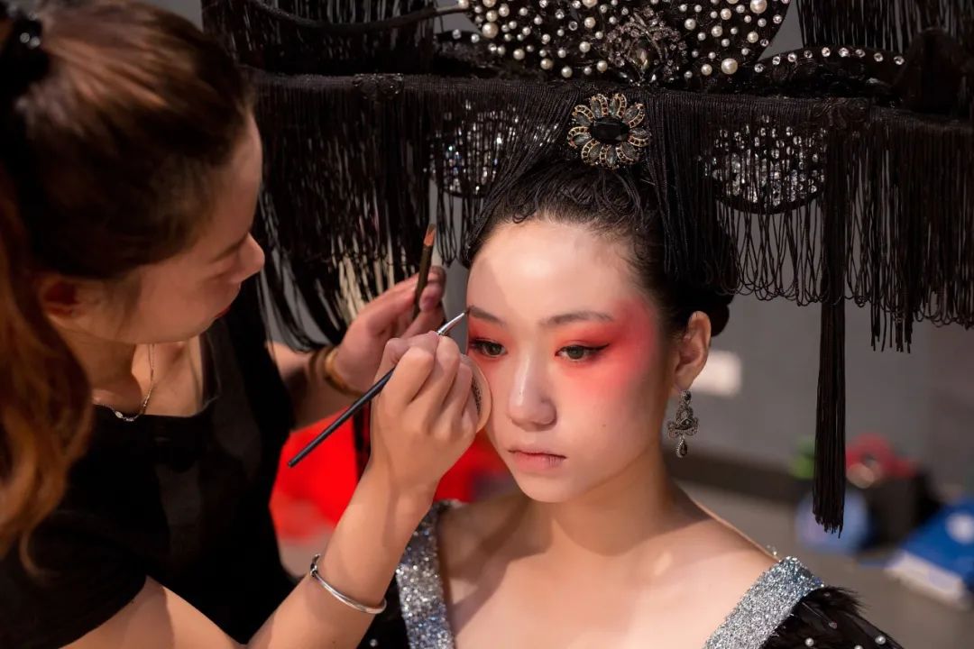 “本届的形象设计作品都是同学们的原创。我们所说的形象设计主要是指人物形象设计,它涵盖了多方面比如妆面、发型、服饰、美甲甚至一些彩绘,是对人物整体形象的设计,突出人物的精神面貌和气质。”