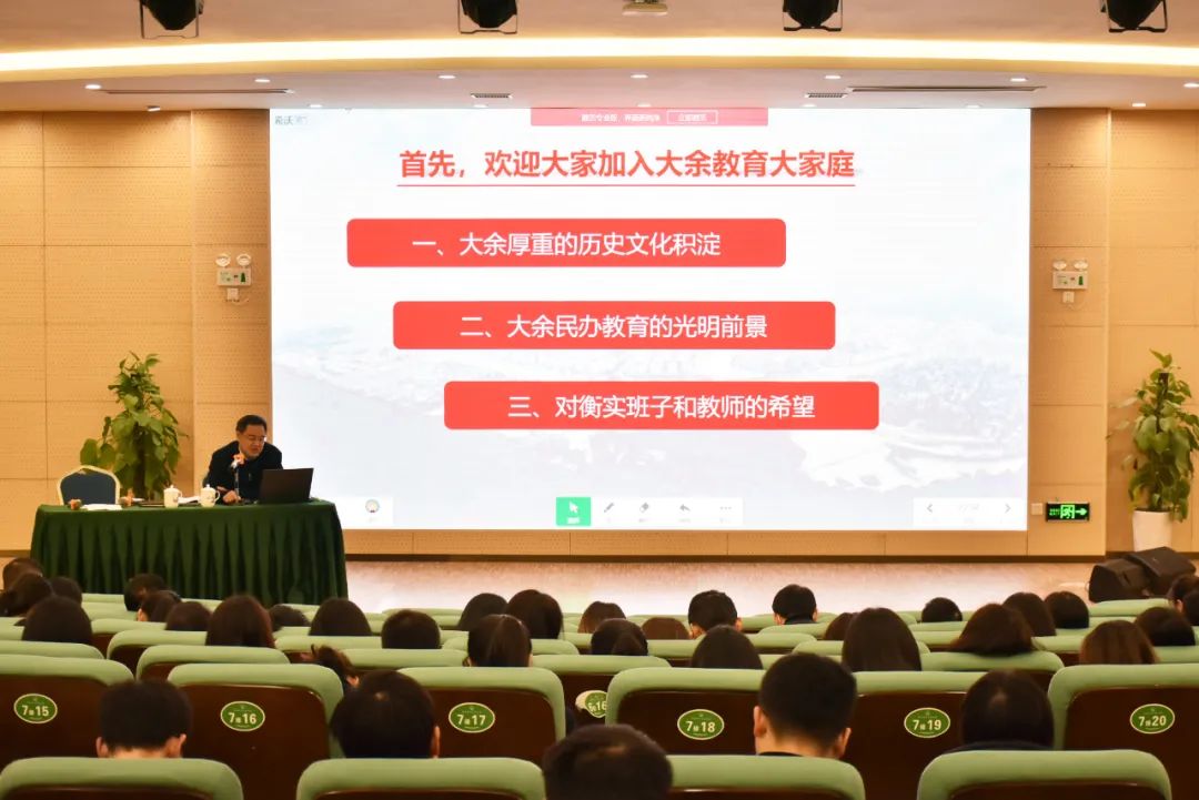 冬日微寒,层林尽染。12月28日晚上,大余衡水实验学校报告厅内不时爆发出热烈的掌声,一场由大余县教科体局党委书记、局长曾凡伟主讲,主题为《立足教育热土,厚植家国情怀》的讲座正在如火如荼地进行。讲座由王跃平校长主持,大余衡水实验学校全体教师到场聆听。