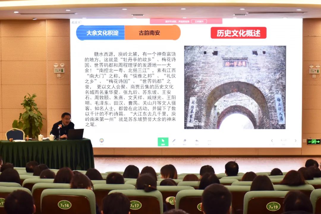 曾局长首先从古韵南安、红色南安、多彩南安、美食南安四个方面入手,向全体教师介绍了大余厚重的历史文化积淀。