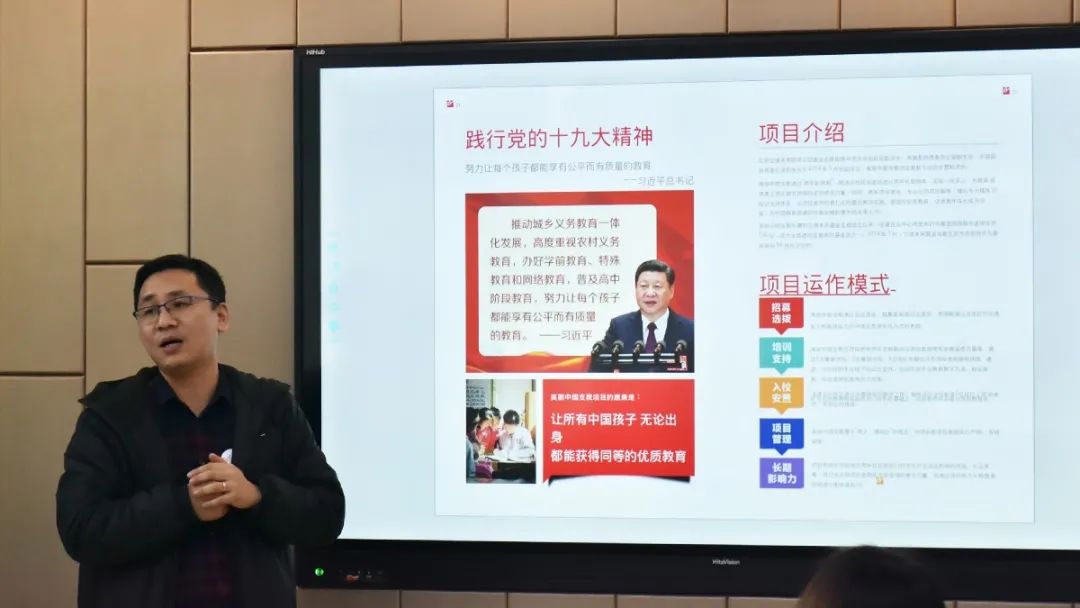 廖杞南理事长从招募选拔、培训支持、入校安置、项目管理、长期影响力等方面介绍项目的运作模式,从线下培训交流活动、线上培训资源库交流平台、个性化发展资源分别介绍项目老师们的培训,从三个维度、五个阶段、五种方式讲解项目老师的发展蓝图,结合项目影响力、课堂影响力、社区影响力、往届校友去向以及合作伙伴等层面的概述使我校领导们更加了解美丽中国项目的培养模式。美丽中国将全国各地优秀人才汇聚到最艰难的地方,向大众昭示着这样的培训对于非师范专业老师也是一条道路,同时也深刻感受到这所“另类”师范的独特魅力。