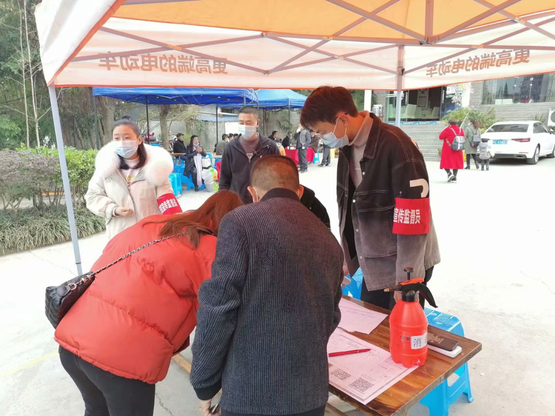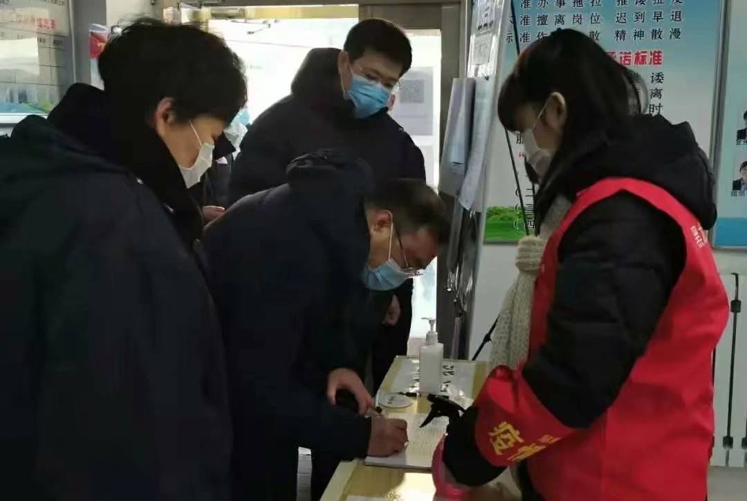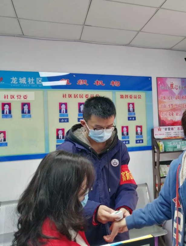 ▲ 协助社区开展入户登记工作,为居民进行体温监测,并签署居家承诺书。