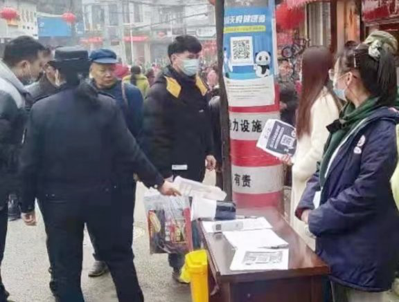 ▲ 走到街头、路口、超市等地方,发放传单,开展健康码、行程码等防疫宣传咨询工作。
