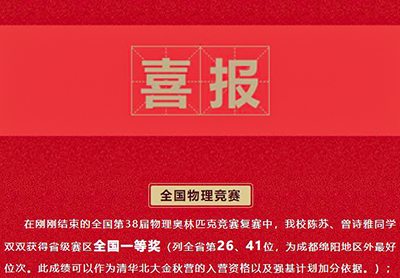 在刚刚结束的全国第38届物理奥林匹克竞赛复赛中,我校陈苏、曾诗雅同学双双获得省级赛区全国一等...