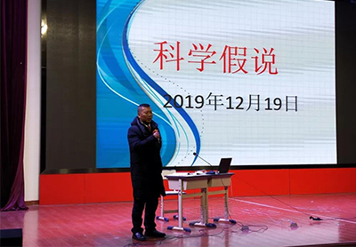 12月19日18点,九年级全体同学聚集大报告厅,聆听谢永中校长“科学假说”的讲座。 讲座开场,段兴...